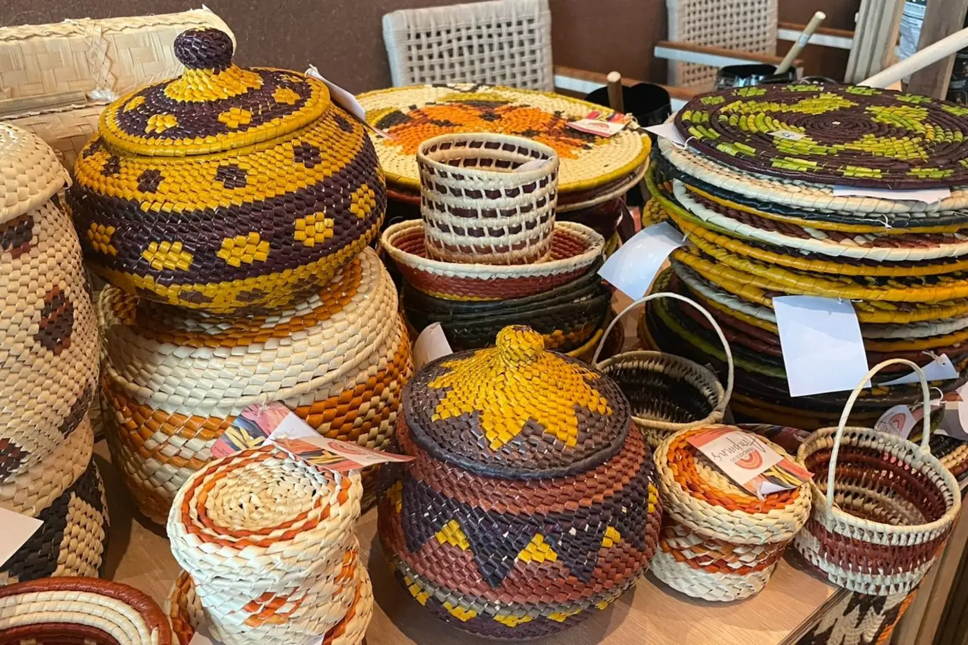 Outro destaque foi o artesanato dos Trançados de Arapiuns, que busca o registro como Marca Coletiva. A representante da associação de artesãs da comunidade, Neidiane Portela, apresentou o trabalho baseado em saberes tradicionais e cores naturais. “A gente tem dois tipos de trançado, o vazado e o fechado. As cores vêm da natureza: urucum, cúrcuma e genipapo. Nosso produto é valorizado e vendido em Belém, Rio de Janeiro, Minas Gerais e também pela internet”, detalhou.