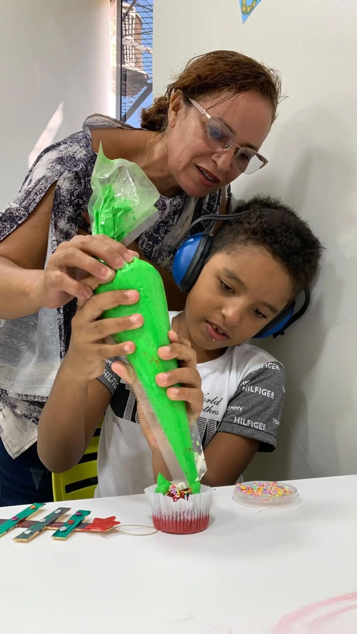 “A Eybe era muito introvertida, se isolava quando chegava alguém que não fazia parte do convívio. Depois das terapias, ela passou a interagir mais, cumprimentar, conversar. Na escola, está mais disposta, participativa e até criando novas amizades, algo que antes não acontecia. Ela mesma lembra que tem terapia e pede para vir”, contou. Para ele, a oficina de cupcakes tornou o evento ainda mais especial. “Achei muito legal. A parte lúdica, o espírito de Natal, tudo isso uniu crianças e responsáveis. A gente se envolve, participa e vive esse momento junto com eles.”