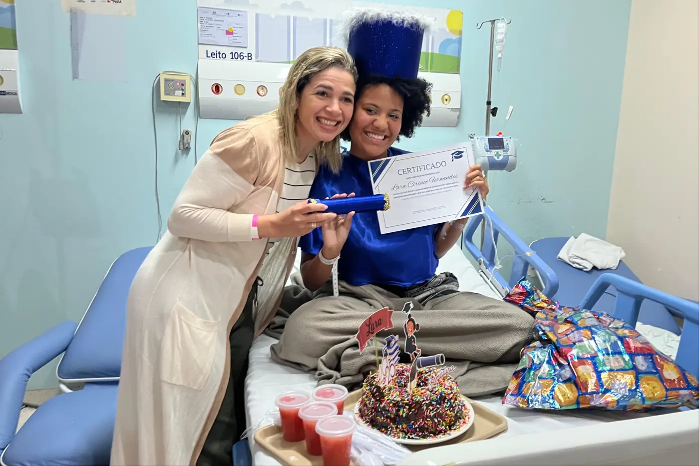 Mesmo Internada, jovem comemora formatura do Ensino Médio no Hospital Oncológico Infantil