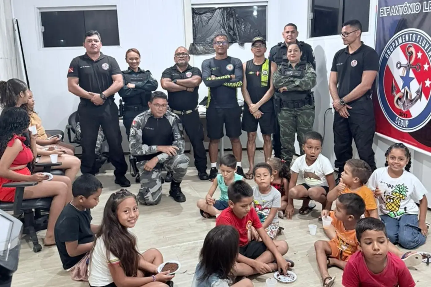 A Base Fluvial Integrada Antônio Lemos, situada em Breves, no Arquipélago do Marajó, realizou na tarde de sábado (13) uma sessão de cinema infantil, proporcionando lazer a crianças da comunidade. A iniciativa fortalece o vínculo entre os agentes de segurança e a população. O público assistiu ao filme "Shrek 3", com direito à pipoca, refrigerante e bolo de chocolate.