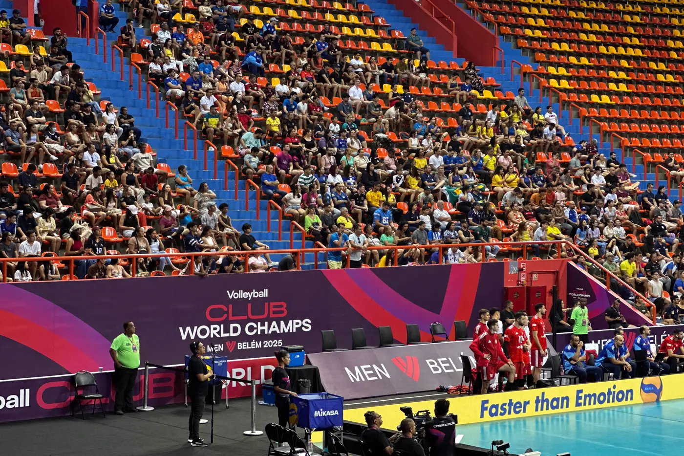 Ao longo da tarde, a animação continuou tomando conta das arquibancadas, com torcedores celebrando a oportunidade de acompanhar de perto o Mundial de Clubes e de ver grandes nomes do vôlei internacional em solo paraense, reforçando o clima de festa no Mangueirinho.