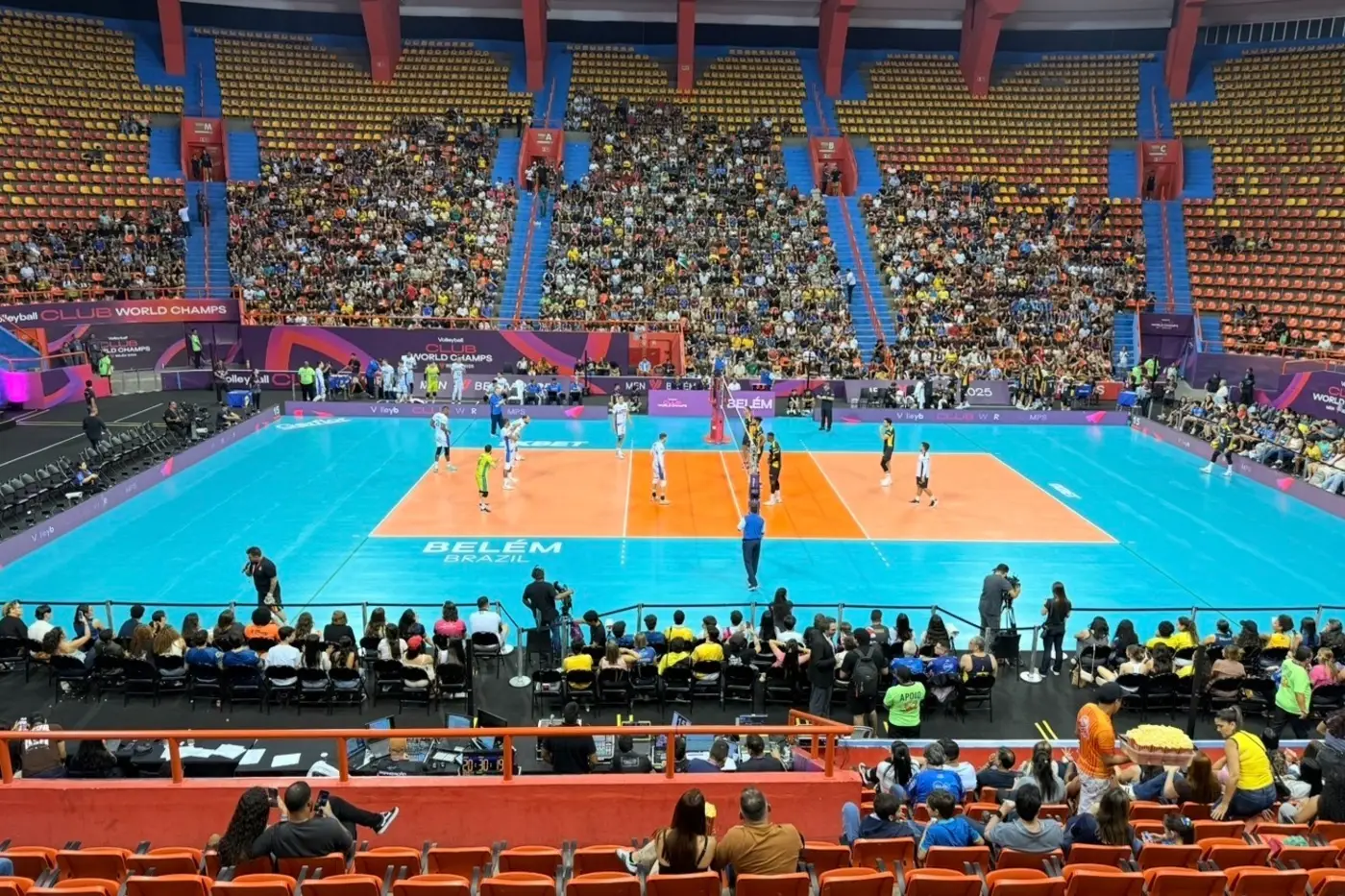 A Arena Guilherme Paraense, o Mangueirinho, em Belém, recebeu na noite desta quarta-feira (17) um clássico nacional: Vôlei Renata (de Campinas-SP) e Praia Clube (Uberlândia-MG), válido pelo Grupo A do Mundial de Clubes de Vôlei Masculino. A partida, que começou às 20h30, integra a competição realizada pela Federação Internacional de Vôlei, com apoio do Governo do Pará, por meio da Secretaria de Estado de Esporte e Lazer (Seel).