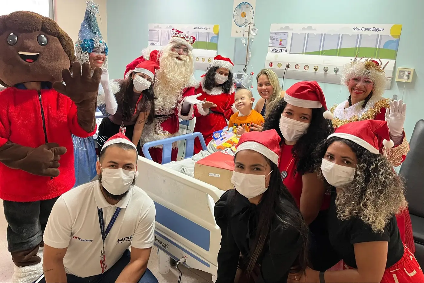 Papai Noel e sua turma percorreram setores do hospital, distribuindo presentes e carinho às crianças e familiares