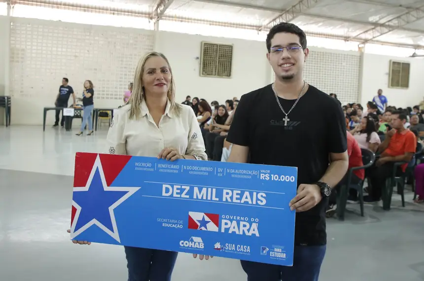 A iniciativa faz parte da entrega dos cheques Bora Estudar 2024, com benefícios a serem executados em 2025. O programa é desenvolvido pelo governo do Estado, por meio da Seduc, e concede um auxílio financeiro de R$ 10 mil, vinculado ao programa Sua Casa, para estudantes da rede estadual que se destacam pelo alto desempenho no Exame Nacional do Ensino Médio (Enem), com nota acima de 900 na Redação, ou pelo rendimento escolar ao longo do ano letivo.