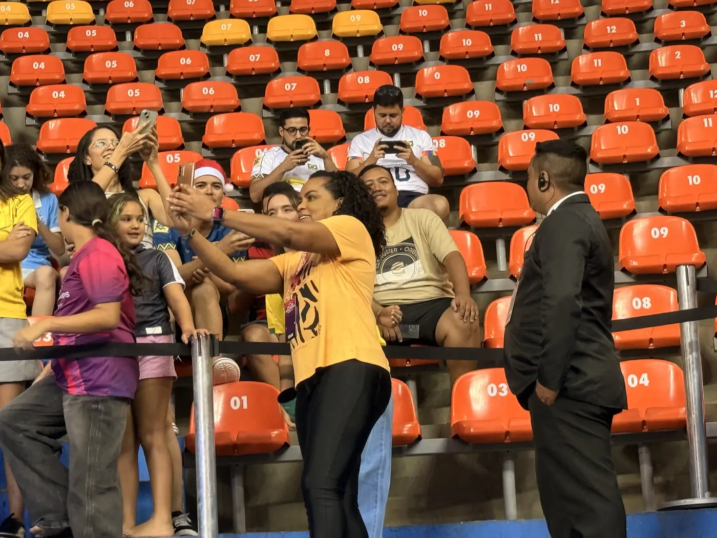 Medalhista olímpica, Hélia Pinto, mais conhecida como Fofão, assistiu jogo no Mangueirinho e foi festejada pelo público nas arquibancadas