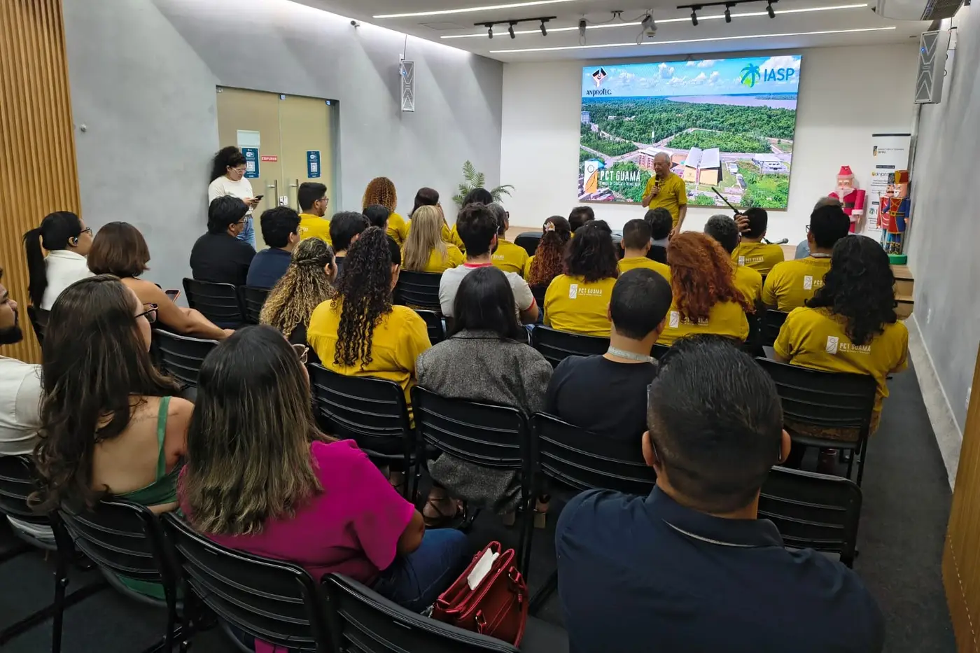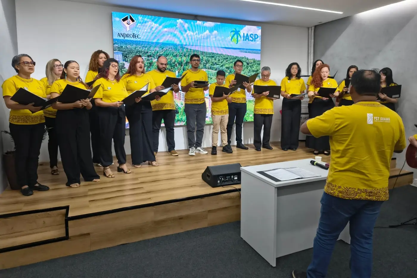 Um repertório com canções natalinas proporcionou um momento de confraternização e reflexão, nesta terça-feira (22), no Parque de Ciência e Tecnologia (PCT) Guamá. O coral faz parte do Projeto de Extensão “Integrando para o Bem-Estar e o Aprimoramento Social e Intelectual”. O objetivo da iniciativa no PCT Guamá é inserir o canto coral como elemento de socialização, uma ferramenta para transformar o ambiente de inovação e o entorno do Parque.