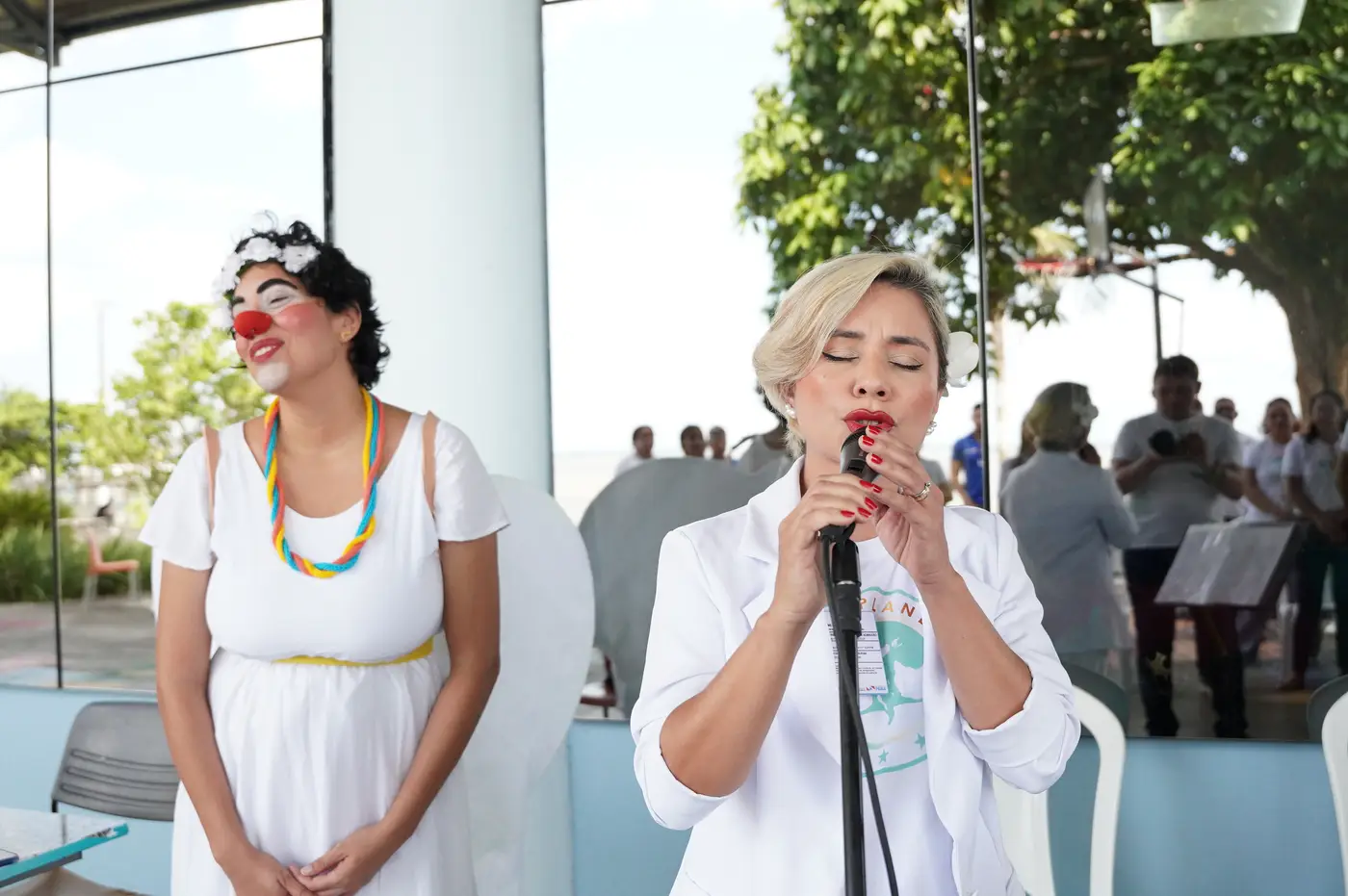 No CIIR, o momento interreligioso foi mediado pela personagem Nanna Chorona, interpretada pela professora de Teatro da unidade, Paula Barros. A mediação artística trouxe sensibilidade e leveza ao encontro, favorecendo a escuta e a aproximação entre os participantes. As facilitadoras foram as colaboradoras Michele da Silva, do Ministério de Música Totus Tuus Marie, da Igreja Católica, e Odiw Falcão, da igreja Assembleia de Deus, fortalecendo a proposta de diálogo e respeito entre diferentes expressões de fé.