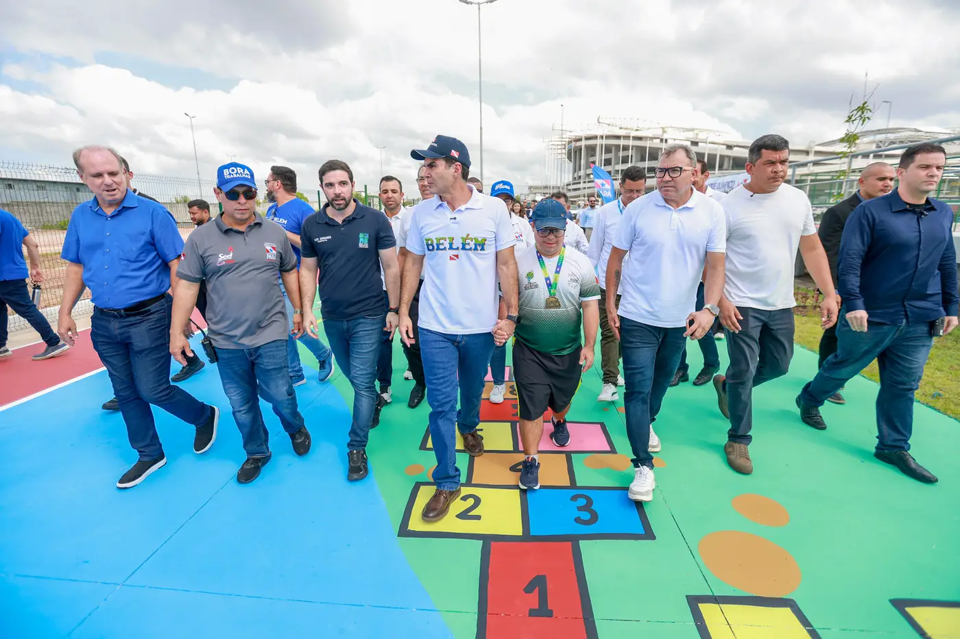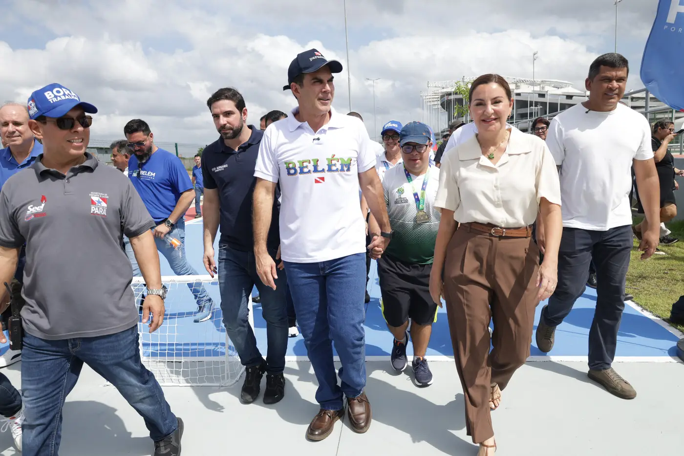 Governador e comitiva na manhã desta terça-feira (13) na entrega do novo mais complexo de esporte e lazer de Belém