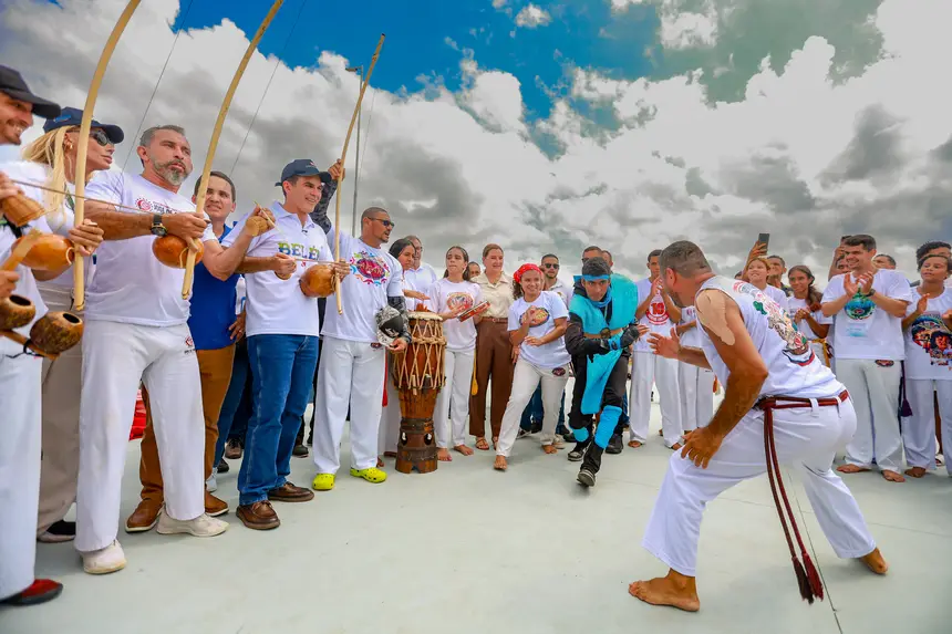 Governador Helder Barbalho até experimentou o jogo de capoeira junto a profissionais