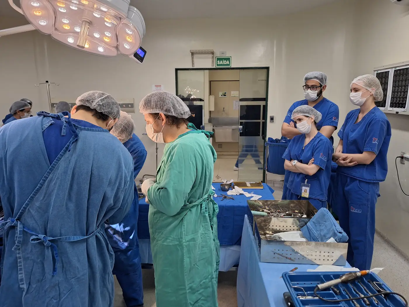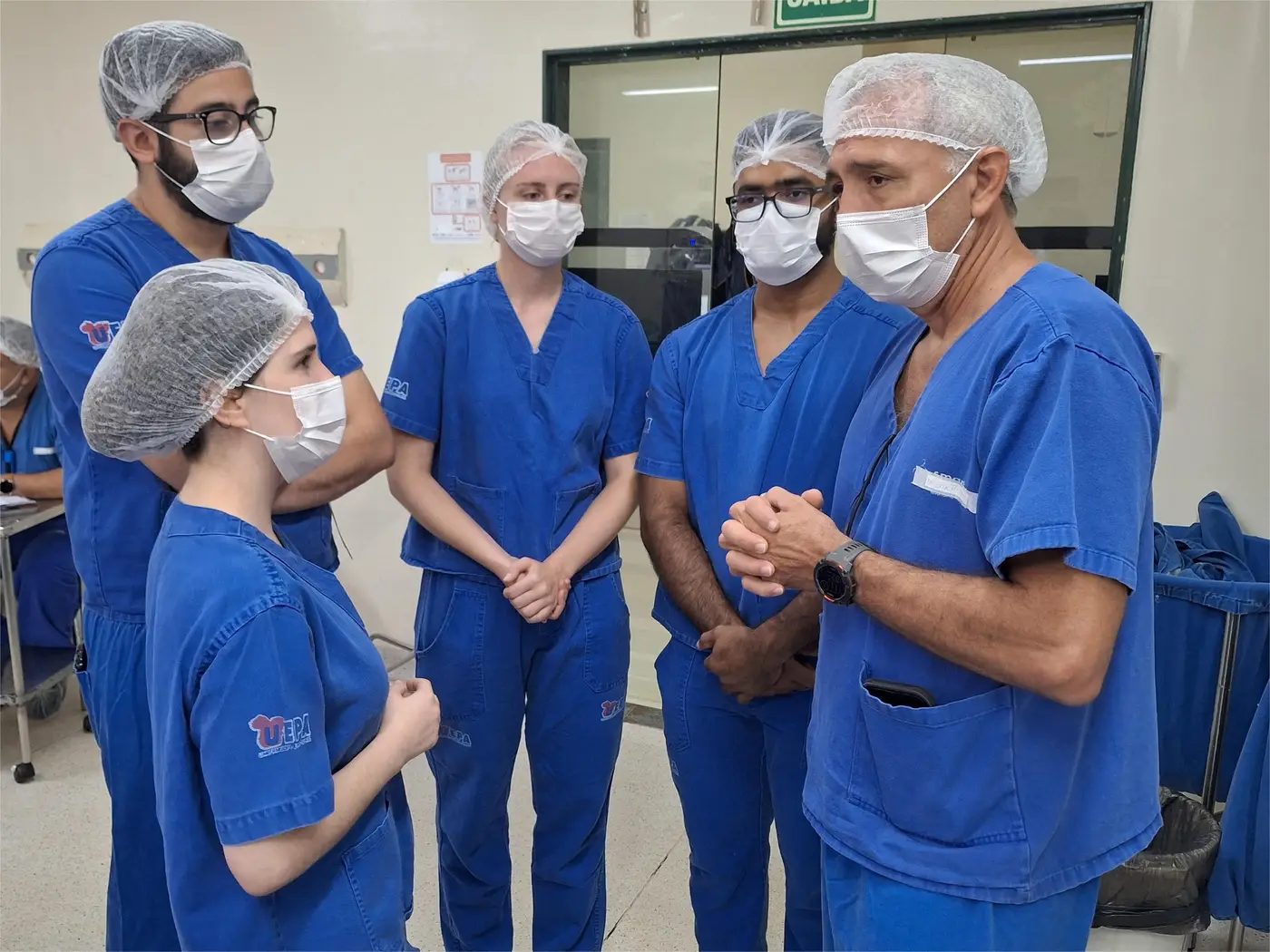 Grupo com acadêmicos de medicina acompanha a equipe de neurocirurgia do Hospital Regional do Baixo Amazonas Dr. Waldemar Penna (HRBA), em Santarém
