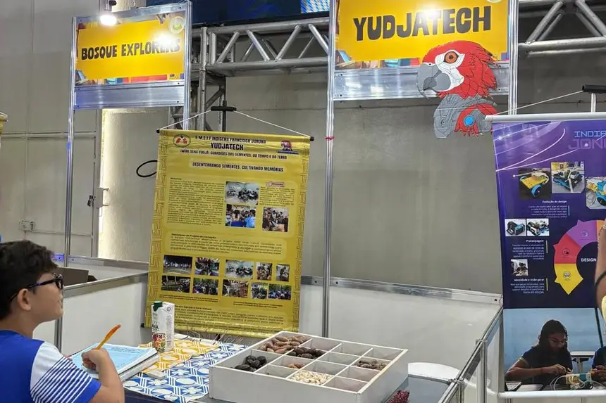 Já a equipe Yudjatech desenvolveu o projeto Iwíre Seha Yudjá: Guardiões das Sementes Ancestrais, que aborda a arqueobotânica a partir do olhar indígena. A proposta reúne sementes tradicionais catalogadas em um acervo digital acessado por QR Code, integrado a uma maleta educativa. O projeto destaca o papel das sementes como guardiãs de memória, história e modos de vida, aproximando ciência, escola e comunidade.
