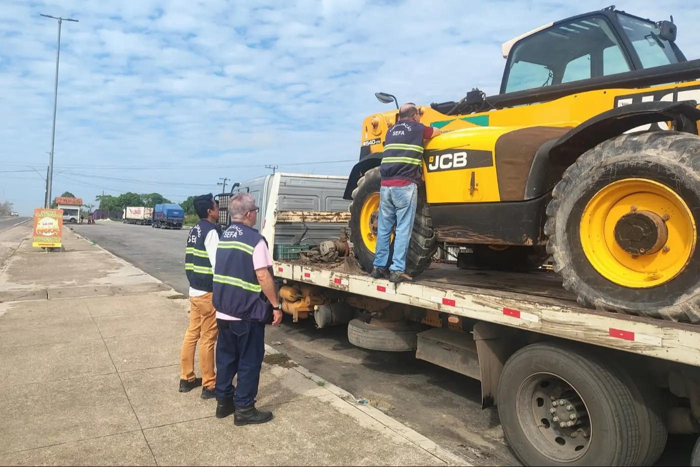 O condutor do caminhão passou pelo posto fiscal e foi necessário abordagem da fiscalização para que o veículo retornasse. "Após a abordagem inicial, foi solicitada a documentação fiscal e apresentada uma nota fiscal de remessa para prestação de serviço, com origem em Santarém-PA e destino a Pacajus-CE, emitida em 28/01. Porém, pela distância, seria impossível chegar ao posto fiscal no dia 29/01. Ao ser questionado, o motorista confirmou que recebeu a máquina em Ananindeua-PA", informou o coordenador Gustavo Bozola.