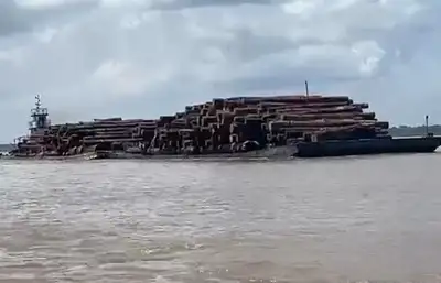 Madeira – Fiscais de receitas estaduais em operação fluvial localizaram, também no dia 02, uma embarcação transportando 590 m3 de madeira em tora. A mercadoria saiu de Portel com destino a Benevides. A abordagem foi no rio Pará, região do Marajó.