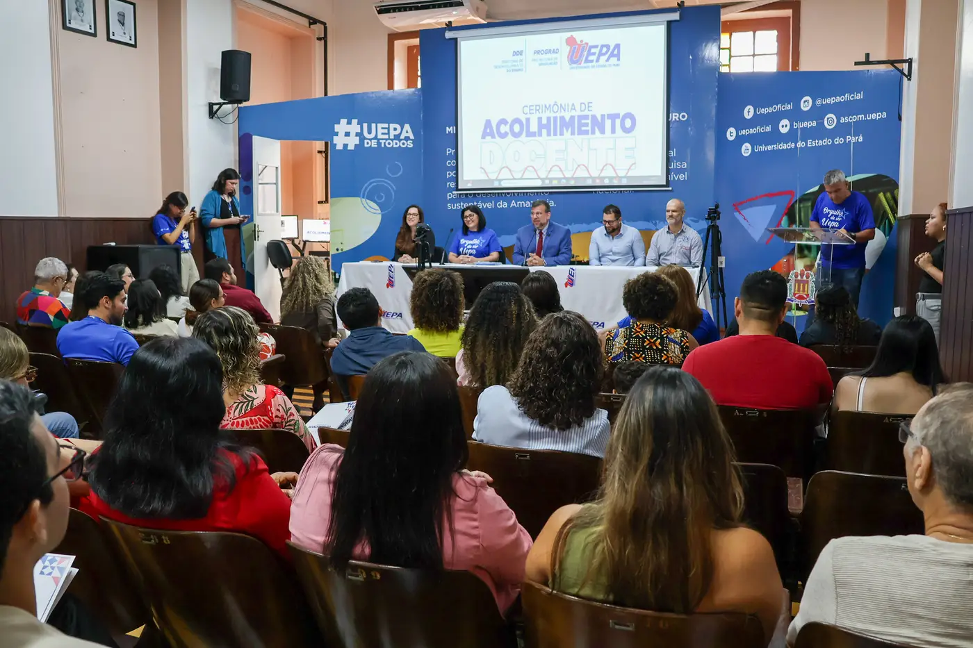 Os 66 novos docentes efetivos convocados do concurso realizado em 2025 foram convidados a participar da Cerimônia de Acolhimento organizada pela Pró-Reitoria de Graduação (Prograd) e a Diretoria de Desenvolvimento do Ensino (DDE). Na ocasião, o reitor da Uepa, Clay Chagas, celebrou a chegada dos novos concursados, exaltando a importância dos professores universitários que “já devem compreender como essa vida de docência transforma, enquanto pessoa, e transforma a realidade de cada aluno que conhecemos”.
