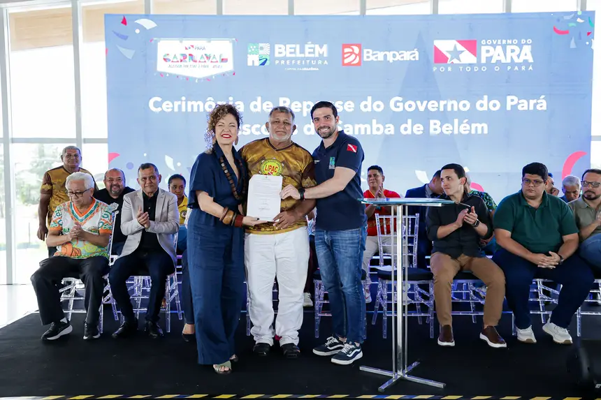 O governo do Pará oficializou, nesta quinta-feira (5), o repasse de R$ 1,8 milhão em incentivos para a liga das escolas de samba de Belém, valor que representa quase o dobro do montante investido no ano anterior. O aporte, viabilizado por meio da Secretaria de Estado de Cultura (Secult) e do Banco do Estado do Pará (Banpará), foi formalizado no Centro de Economia Criativa do Parque da Cidade, consolidando uma estratégia de fomento à economia criativa e à valorização da cultura popular amazônica.