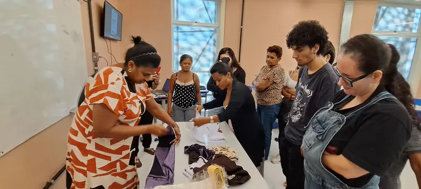 Os conteúdos foram ministrados pela personal organizer Thaís Sá e divididos entre teoria e prática. Durante a oficina, a professora apresentou técnicas de categorização e conservação das peças. Os participantes aprenderam a organizar roupas por tipo, ocasião e cor, facilitando a escolha e garantindo maior conservação, evitando amassados e danos. Também foram introduzidos métodos de dobra e armazenamento, como a técnica vertical de Marie Kondo, que otimiza espaço e mantém a organização das gavetas.