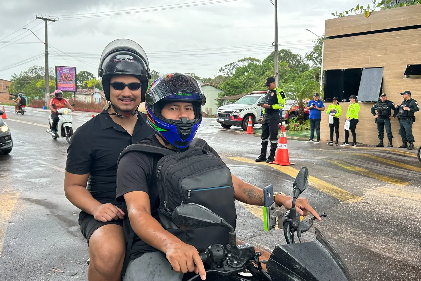Também visitante, vindo de Belém, Lucas Monteiro, acompanhado do amigo Victor Ruiz, destacou a relevância das ações e do uso de equipamentos de segurança. “Durante a viagem vimos algumas imprudências, muita pressa na estrada, mas também bastante fiscalização. Para quem é motociclista, o capacete é a principal proteção, salva vidas. Essas ações são muito válidas, principalmente no interior, onde ainda tem muita gente sem capacete ou habilitação. A conscientização é fundamental, ainda mais no período de festa, para que ninguém misture bebida e direção”, afirmou.