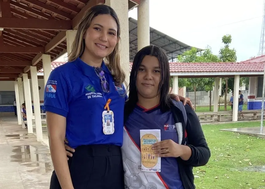 Já na segunda ação, o HGT promoveu ação externa voltada à prevenção de alerta sobre gravidez precoce na adolescência, em uma escola estadual do município de Tailândia, reforçando a importância da informação, do diálogo e do cuidado desde cedo.