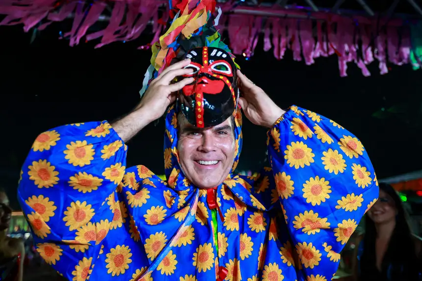 Alegria e sustentabilidade - Neste domingo (15), Helder Barbalho foi a Curuçá, no nordeste do Estado, e ao lado dos brincantes vivenciou uma das mais simbólicas manifestações do Carnaval paraense: o bloco Pretinhos do Mangue.