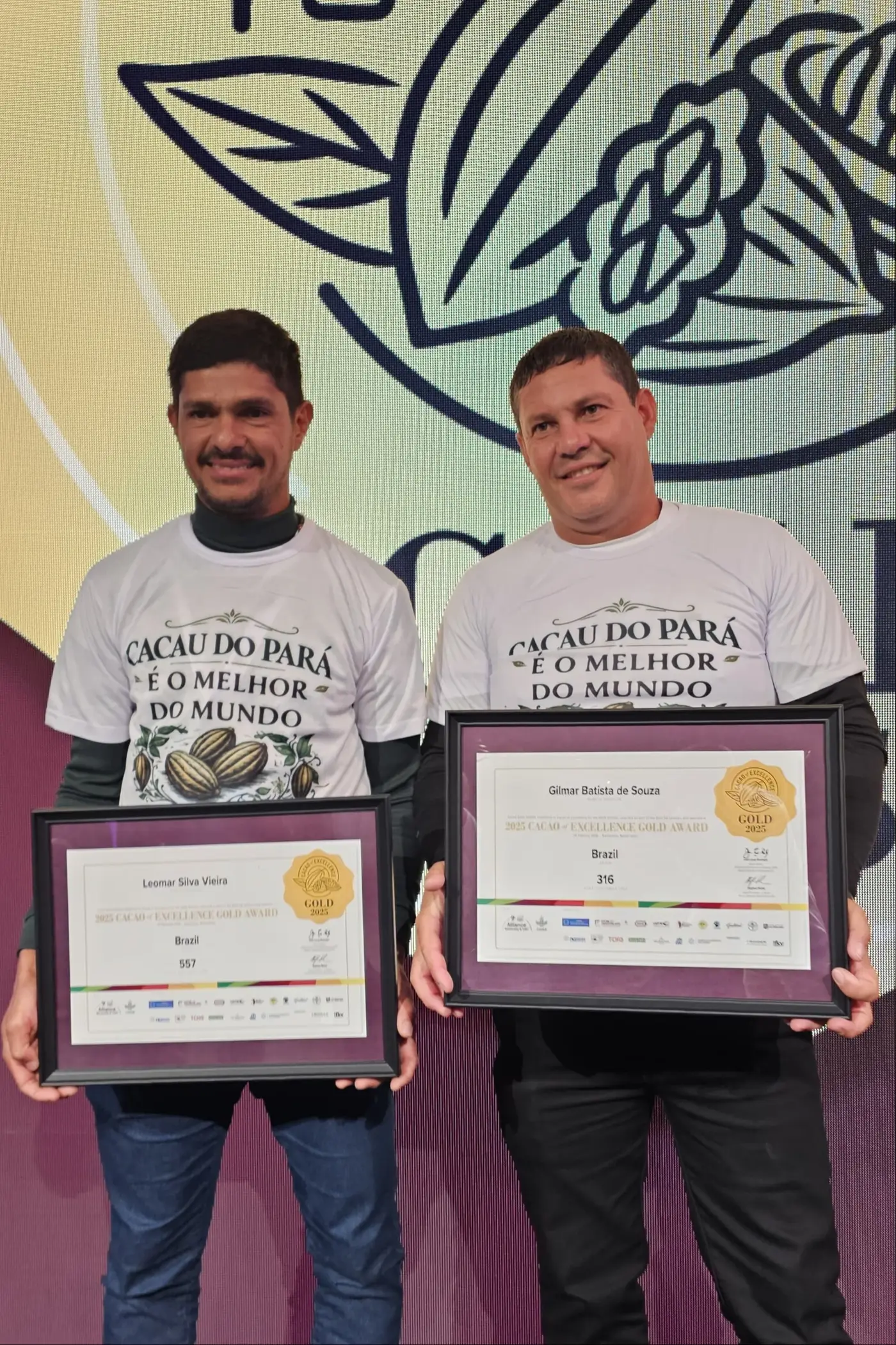Leomar Vieira, de Medicilândia, e Gilmar Batista, de Uruará foram premiados na Holanda. O representante da Bahia também ficou entre os ganhadores, consagrando uma tripla vitória do cacau do Brasil
