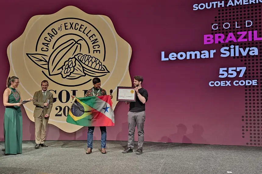 Os produtores da Região de Integração do Xingu, Leomar Vieira, de Medicilândia, e Gilmar Batista, de Uruará, conquistaram o ouro no concurso de melhor cacau do mundo. A premiação foi realizada nesta sexta-feira (20) , em Amsterdã, na Holanda. O representante da Bahia, Agrícola Cantagalo, também foi agraciado entre os melhores, consolidando uma tripla vitória ao Brasil.