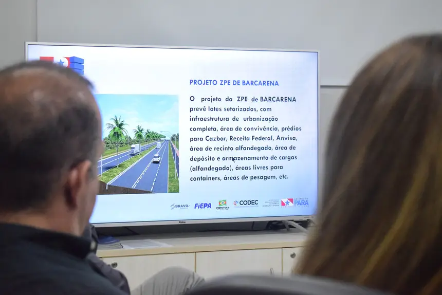 Durante o encontro, a equipe técnica detalhou as vantagens operacionais e estruturais do empreendimento. A ZPE de Barcarena possui localização estratégica próxima ao Porto de Vila do Conde, com acesso facilitado à malha rodoviária estadual e às principais rotas de exportação do Norte do país. O modelo oferece área alfandegada com controle aduaneiro interno, monitoramento eletrônico 24 horas das cargas, rastreabilidade e estrutura preparada para agilizar o fluxo logístico até o embarque.