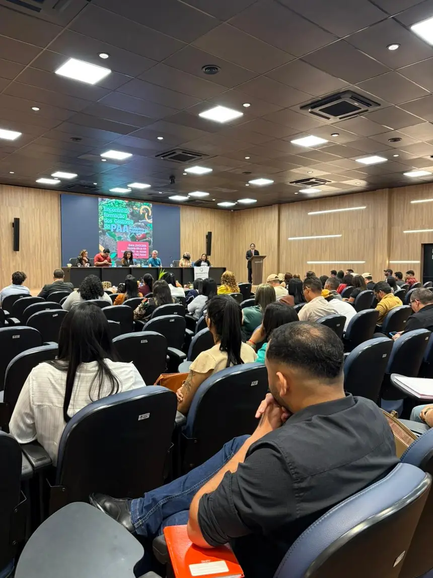 Cerca de 200 gestores públicos participaram, nesta quinta-feira (20), em Belém, do Encontro de Capacitação do Programa de Aquisição de Alimentos (PAA), promovido pelo Governo do Estado, por meio da Seaster, para fortalecer a execução da política em 122 municípios do Pará, aderidos ao Sistema Nacional de Segurança Alimentar e Nutricional (SISAN). O objetivo foi aprimorar a aplicação dos recursos, que somam R$ 11.984.372,47 em execução em 2026, por meio de orientações técnicas sobre fluxos operacionais, prestação de contas e acompanhamento do programa, que compra alimentos da agricultura familiar para doação a instituições socioassistenciais, priorizando populações em situação de insegurança alimentar.