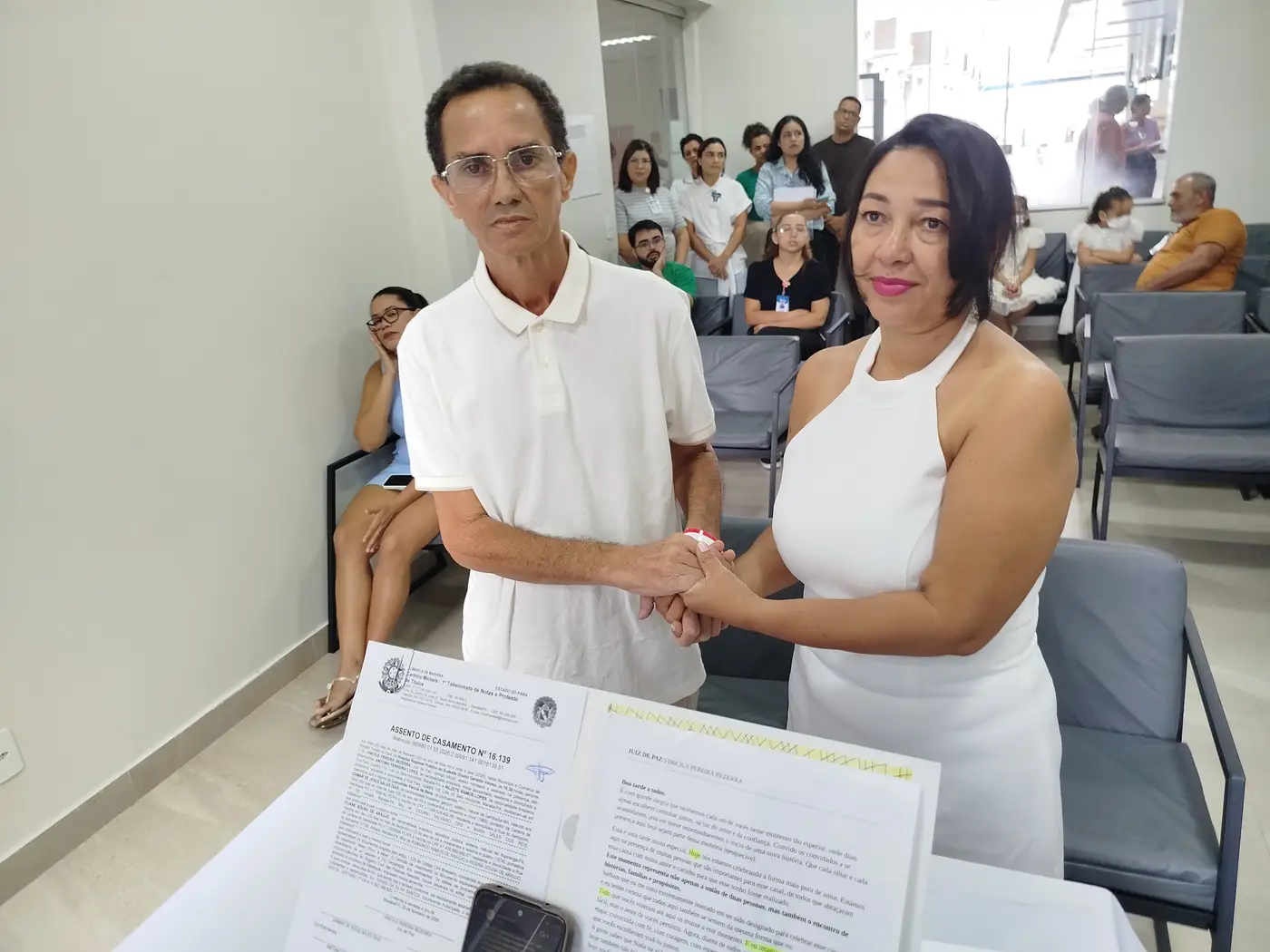 Após 32 anos caminhando lado a lado, entre conquistas e desafios, Izamar de Jesus e Eliane Sousa decidiram oficializar o amor que sempre sustentou a relação. No último sábado (21), casaram-se no civil na capela ecumênica do Hospital Regional do Sudeste do Pará – Dr. Geraldo Veloso (HRSP), em Marabá, onde Izamar realiza tratamento oncológico, transformando o espaço de cuidado em cenário de fé, esperança e celebração.