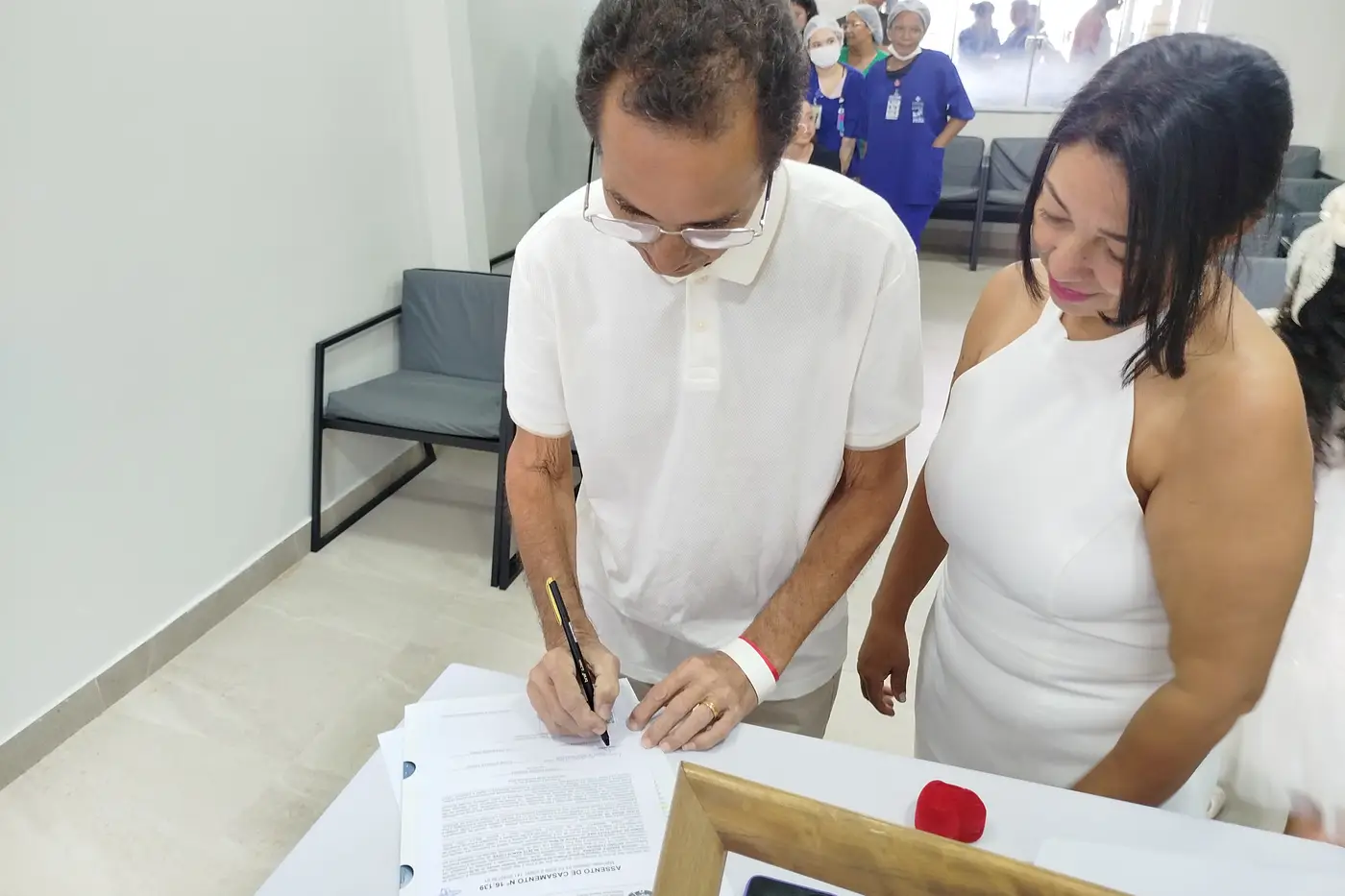 Após 32 anos de união, cerimônia civil foi realizada na capela da unidade onde ele realiza tratamento, transformando o ambiente hospitalar em cenário de fé e esperança