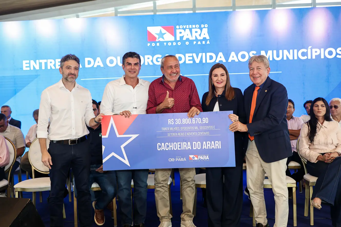 O Governo do Pará realizou, nesta terça-feira (24), no Parque da Cidade, em Belém, a cerimônia que marcou dois momentos decisivos para o saneamento no Estado: o repasse da primeira rodada da outorga da concessão regionalizada a 36 municípios paraenses, que ultrapassa R$ 100 milhões, e o início oficial dos investimentos da concessionária Águas do Pará nessas localidades que somam 8,4 bilhões durante o contrato.