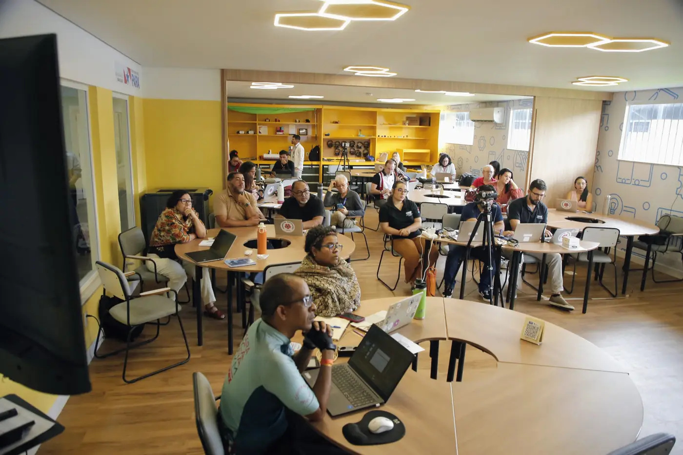 O encontro promovido pela Seduc, entre os dias 23 e 25 de fevereiro, no Centro de Inovação, instalado na Escola Cordeiro de Farias, foi coordenado pelo Ciseb em parceria com a Fundação Telefônica Vivo, reunindo 40 formadores presenciais, além de participantes de diversas regiões do Pará, com participação on-line.