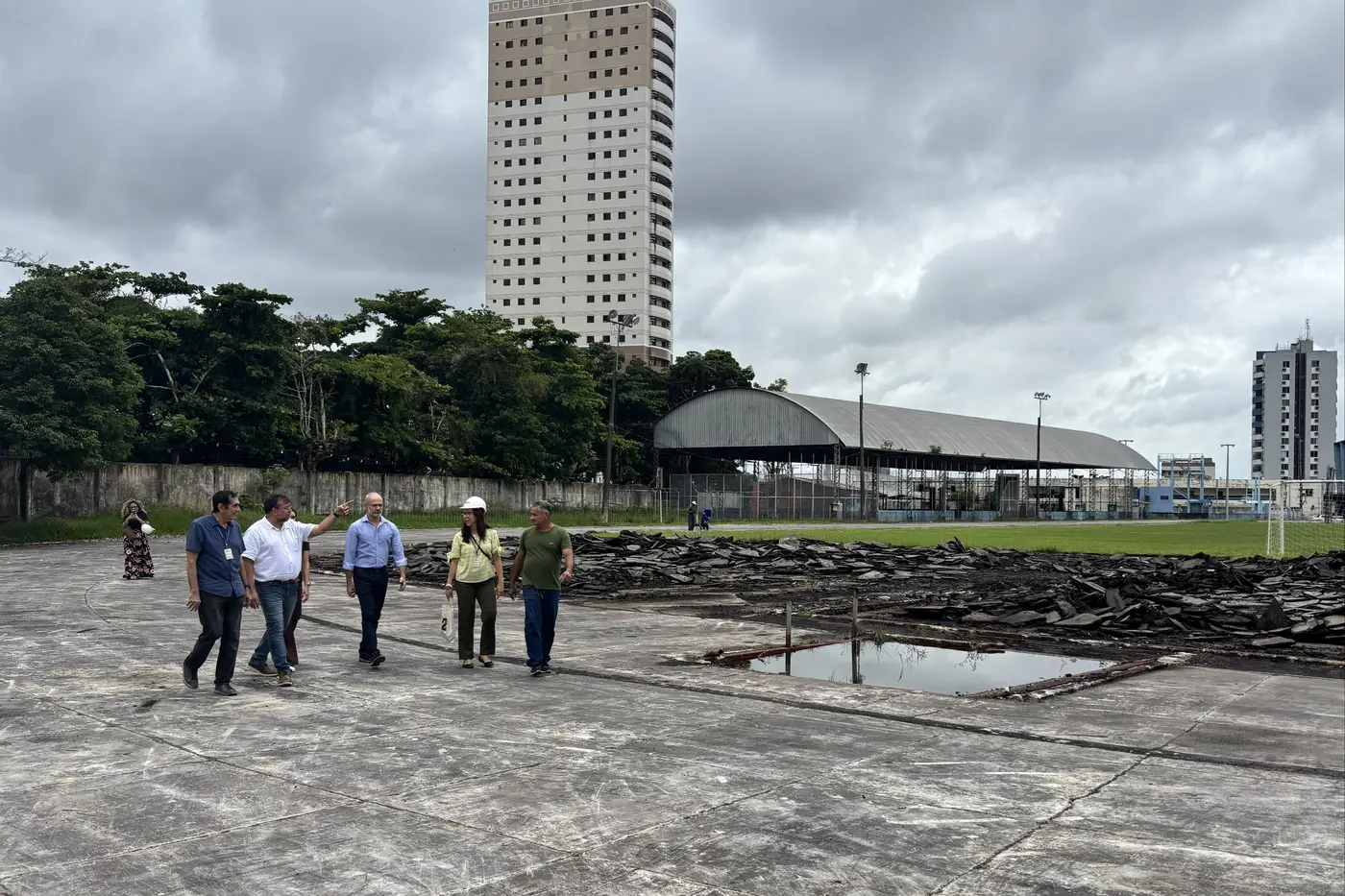 Equipe da Uepa em visita às obras da pista de atletismo