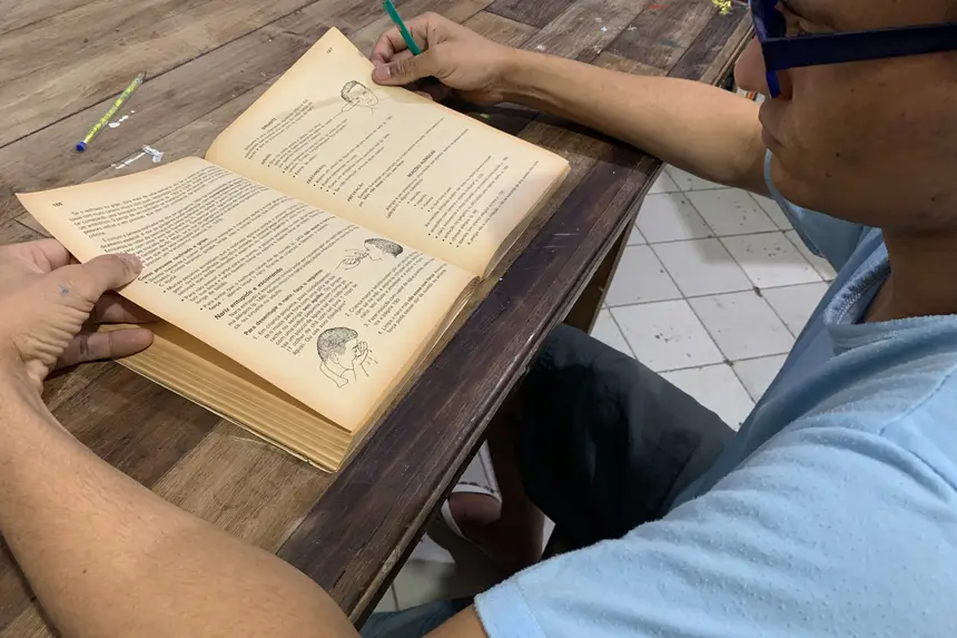 As atividades das bibliotecas, como catalogação e inserção dos livros no acervo, também contam com a participação de pessoas privadas de liberdade. Após treinamento, elas atuam como monitores nas unidades, contribuindo para a organização dos espaços e para o desenvolvimento das atividades educacionais.