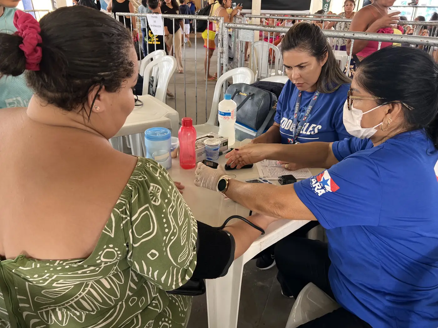 O público feminino contou com a estrutura das Carretas da Mulher, unidades móveis equipadas para realização de exames e consultas especializadas. As participantes tiveram acesso a atendimento com mastologista e exames de ultrassonografia — com laudo entregue na hora — incluindo procedimentos para mama, tireoide, axila, abdome total, vias urinárias e transvaginal. Também foram ofertados exames de mamografia, tomografia e o preventivo do câncer do colo do útero (PCCU).
