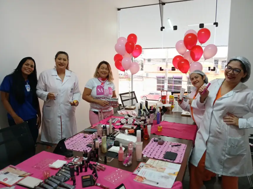 A programação contou com uma confraternização reunindo, além de palestra na Recepção Ambulatorial sobre a importância do autoexame das mamas e da prevenção do câncer de mama, conduzida por alunos do curso de Enfermagem da Universidade da Amazônia. A atividade foi direcionada tanto às colaboradoras quanto às usuárias e acompanhantes presentes no hospital, com orientações sobre cuidados preventivos e incentivo ao diagnóstico precoce.