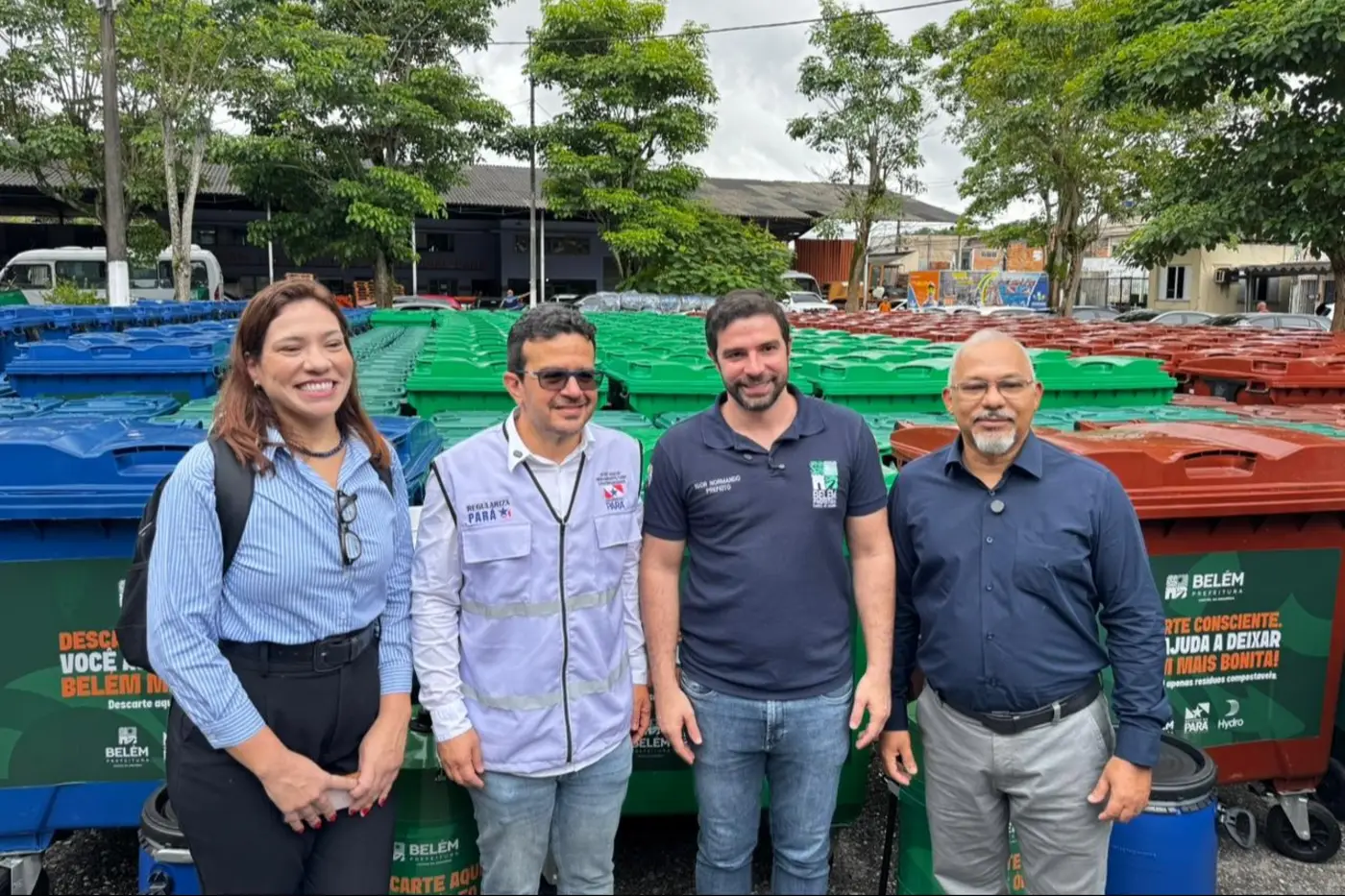 A Secretaria de Estado de Meio Ambiente, Clima e Sustentabilidade (Semas) garantiu um novo reforço à política de gestão de resíduos sólidos em Belém. Esta semana, a Prefeitura de Belém recebeu 1.335 equipamentos, entre 1.225 coletores e 110 caçambas metálicas, por meio de uma ação viabilizada a partir do acordo de cooperação socioambiental firmado entre o Governo do Pará, por meio da Semas, e a Hydro.