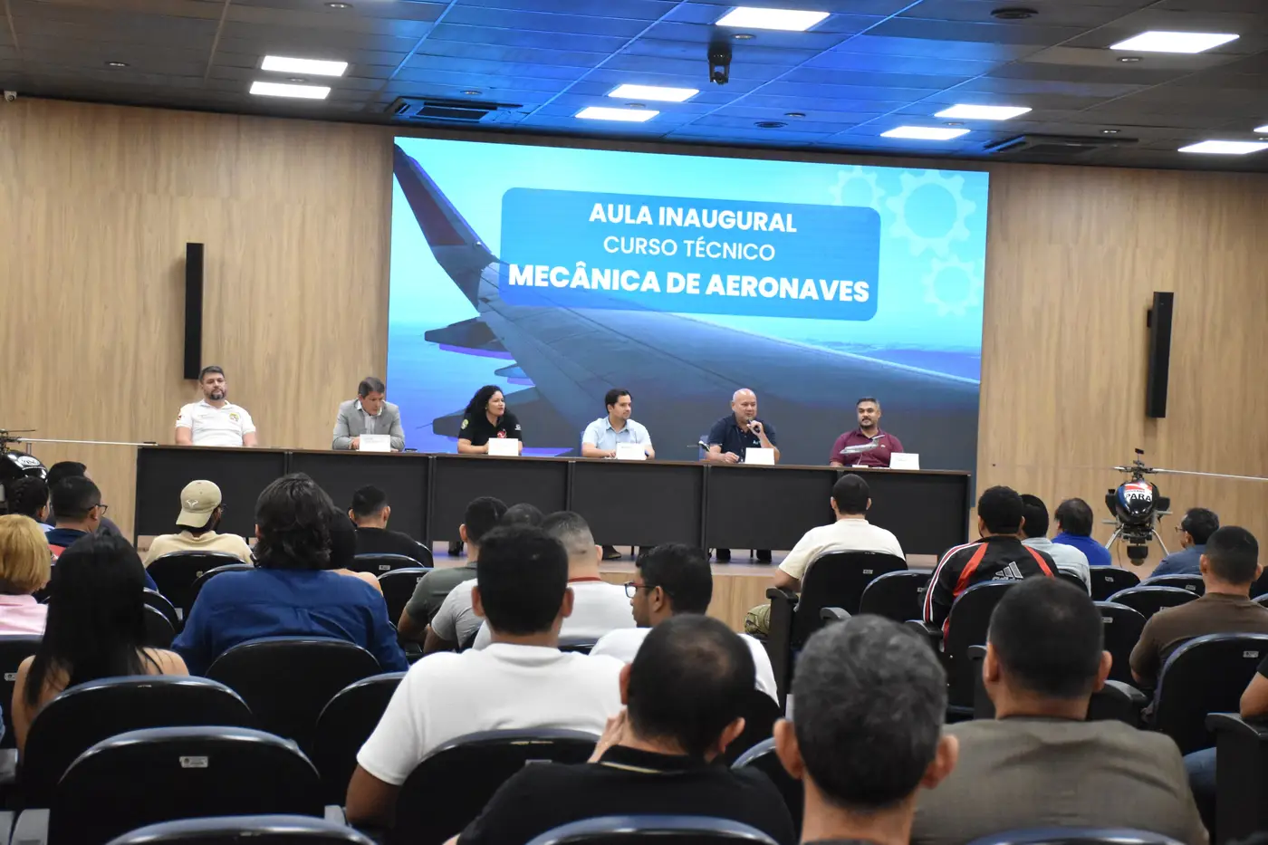 A formação de novos profissionais para o setor aeronáutico ganhou um novo capítulo na noite desta segunda-feira (16) com a realização da aula inaugural da segunda turma do Curso Técnico em Mecânica de Aeronaves. A iniciativa do Governo do Estado, por meio da Secretaria de Ciência, Tecnologia e Educação Superior, Profissional e Tecnológica (Sectet), em parceria com o Grupamento Aéreo de Segurança Pública (Graesp) e a Escola Paraense de Aviação Civil (EPAC), consolida-se como uma das principais ações públicas de qualificação na área.