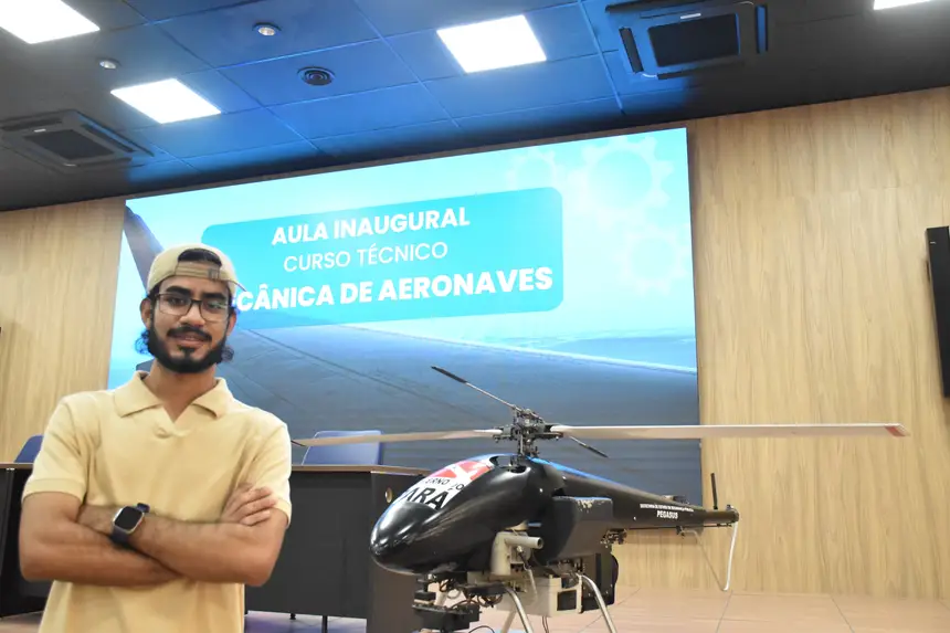 Outro aluno da turma é Gabriel Guedes, 22 anos, estudante da Universidade Federal do Pará (UFPA), onde cursa Engenharia Ferroviária. Ele trabalha com modelagem de drones e pequenas aeronaves e decidiu ingressar na formação técnica para ampliar sua atuação no setor. “Eu trabalho com modelagem de drones e pequenas aeronaves, então o curso de mecânica de aeronaves vai complementar muito minha formação. A expectativa é ampliar meu conhecimento técnico e alavancar minha posição no mercado”, destacou o universitário.