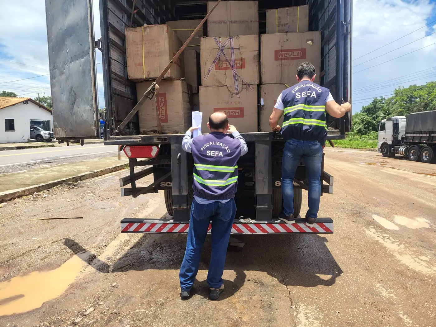 Fiscais da Coordenação de controle de mercadorias em trânsito da Secretaria de Estado da Fazenda (Sefa) no Gurupi, município de Cachoeira do Piriá, no nordeste paraense, divisa com o Maranhão, apreenderam 2.416 caixas de som importadas da China, na segunda-feira (16). A mercadoria chegou ao Brasil pelo Porto de Barcarena (PA), e seu destino era Recife (PE).
