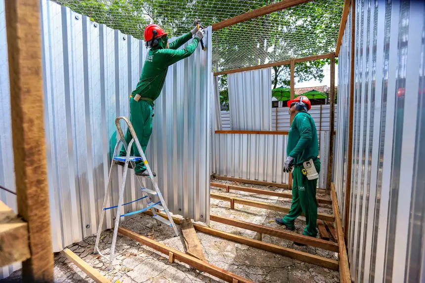 Hoje, os serviços estão direcionados à construção da feira provisória, para onde serão remanejados os trabalhadores das atuais feiras do Açaí e do Artesanato, assim como as barracas de venda de água de coco e tapioca. Também está sendo reconstruída a Praça do Cruzeiro e recuperado o calçamento. A obra gera cerca de 50 empregos diretos.