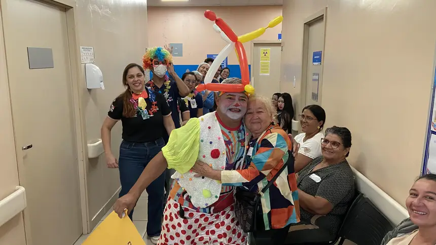 A programação contou com a participação do palhaço Kbção, que percorreu as instalações da unidade, incluindo o Centro de Hemodiálise