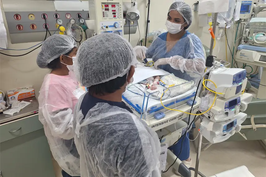 Os bebês são acompanhados 24 horas por médicos, enfermeiros, técnicos de enfermagem e outros profissionais da equipe multiprofissional, que oferecem suporte essencial a prematuros - aqueles nascidos antes de 37 semanas - e bebês com baixo peso ou complicações no nascimento.