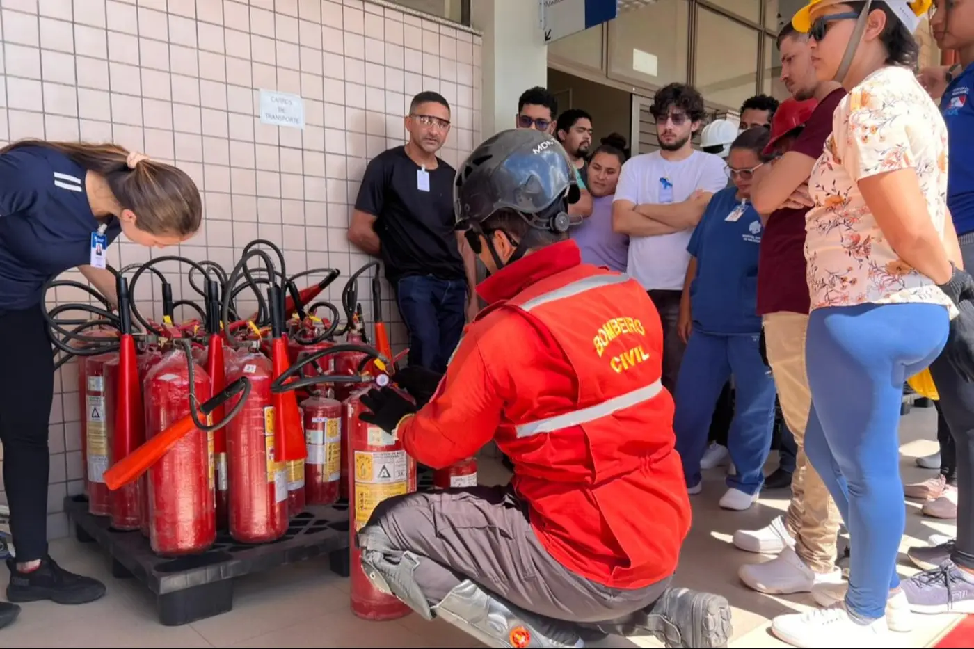 A capacitação também inclui orientações sobre o uso de extintores e hidrantes, com demonstrações práticas voltadas ao manuseio correto dos equipamentos. São apresentados ainda pontos considerados críticos na unidade, como áreas de armazenamento de gases e outros insumos, com ênfase nos cuidados necessários para prevenir acidentes.