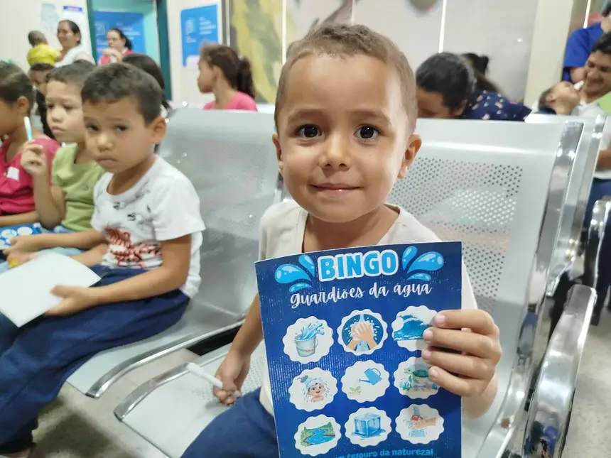 Durante a programação, que contou com o apoio da Comissão de Gerenciamento de Resíduos de Serviços de Saúde (CGRSS), meninas e meninos participaram de atividades como o bingo da educação ambiental, com cartelas ilustradas sobre o uso responsável da água.