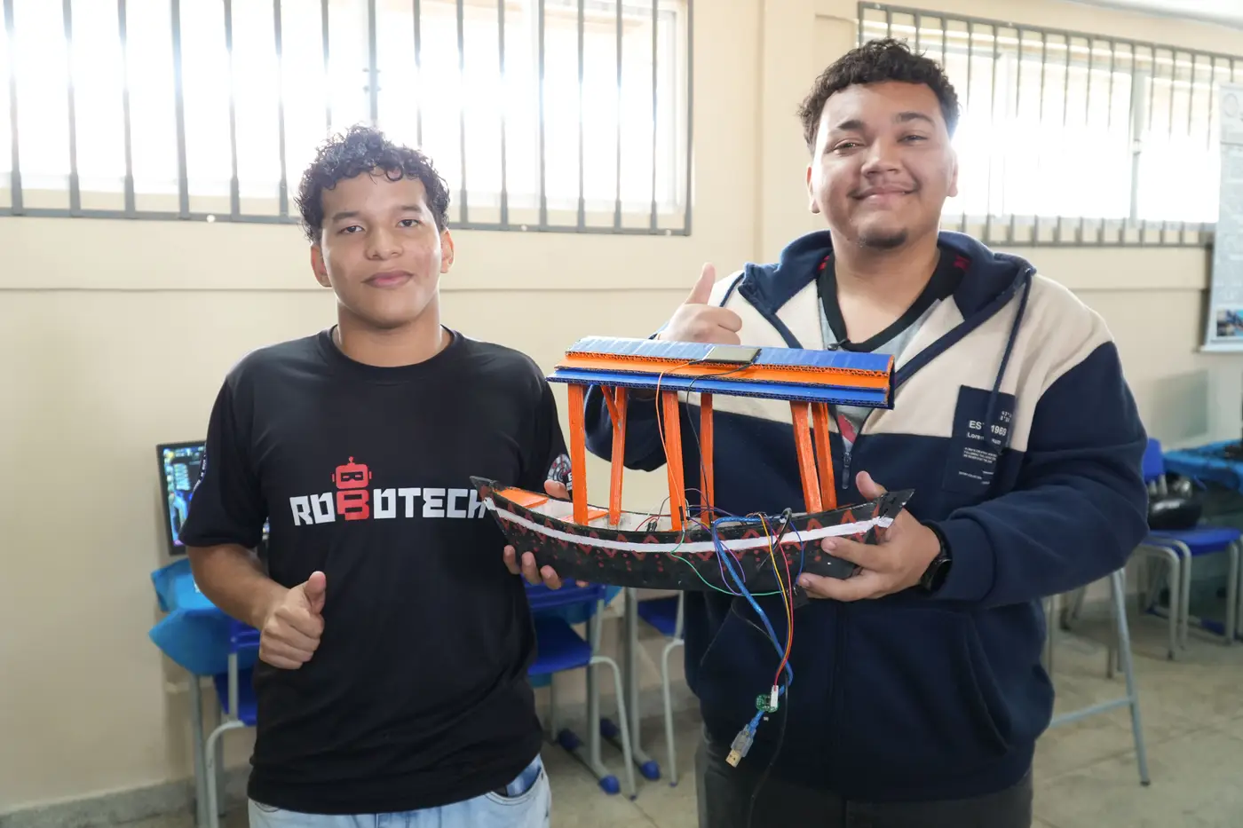 “Uni a necessidade dela e de várias famílias no interior, com um dos assuntos que estão em pauta, atualmente, que são as energias renováveis. Optamos por energia solar, já que o objetivo do projeto era conseguir uma solução viável para as comunidades. A robótica vem para tentar resolver esses problemas com a inovação e tecnologia, essa possibilidade foi uma das coisas que me motivou a entrar para o projeto. As oportunidades vividas aqui na escola transformaram a minha vida”, celebra.