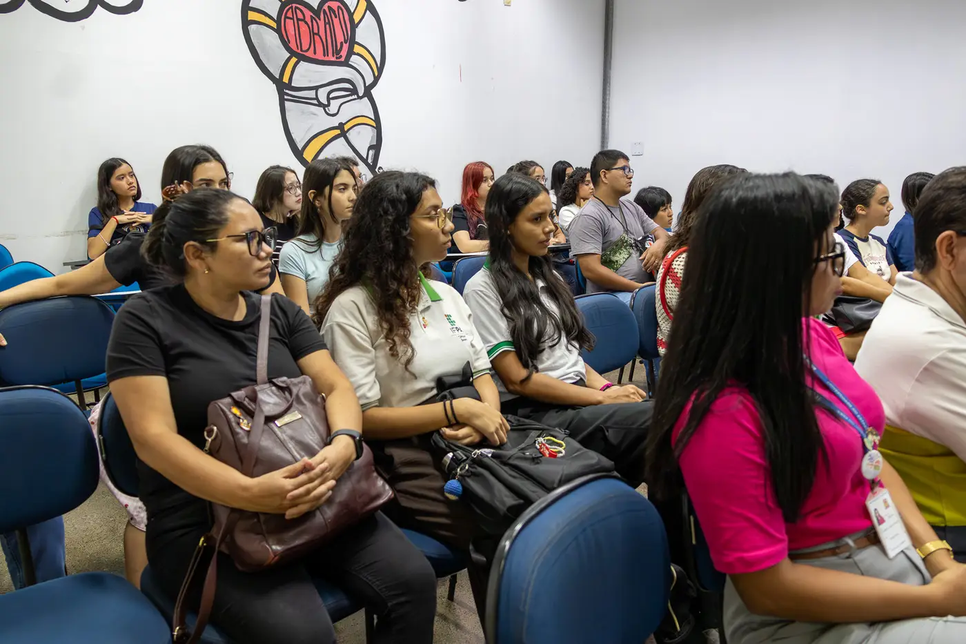 As estudantes também participaram da oficina "Comunicação e Expressão: a voz das meninas na Ciência", com destaque para a importância da comunicação como ferramenta de empoderamento, incentivando estudantes a expressarem suas ideias com clareza e confiança, reforçando o protagonismo feminino na Ciência.