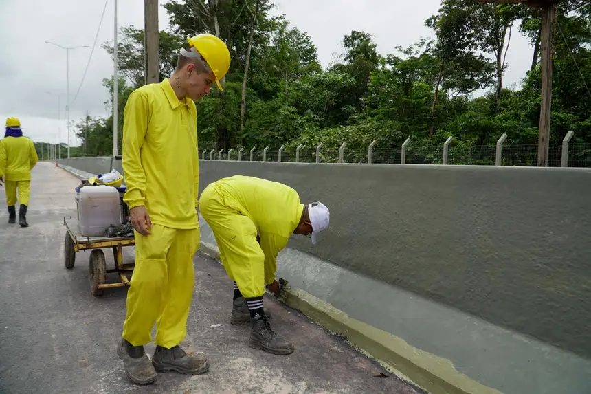 Por meio de parceria entre Seap e iniciativa privada, 60 internos trabalham na infraestrutura da nova via, garantindo remição de pena, qualificação profissional e auxílio na mobilidade da Grande Belém