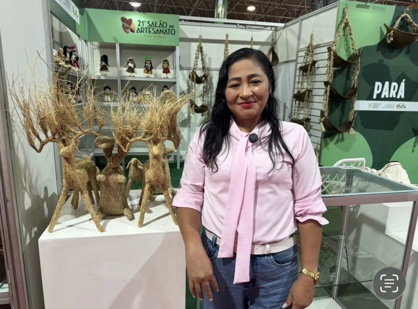 Do município de Acará, a artesã Nelcilene Martins, que trabalha com artesanato desde os 10 anos, também ressaltou a importância do apoio recebido para ampliar sua trajetória profissional.