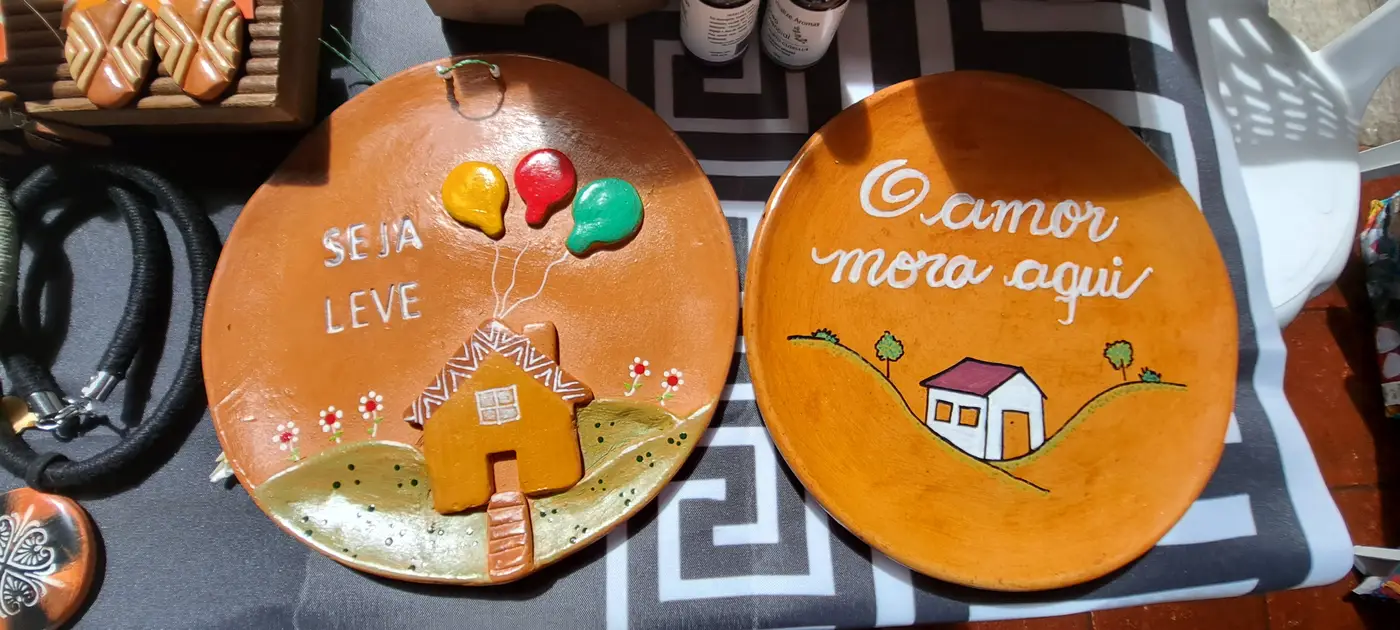 Sustentabilidade - Uma das expositoras, Valdenise Genu, é artesã, ceramista e representante do Ateliê Art’Genuína, criado em 2017. Ela se destaca na produção de biojoias e objetos sustentáveis, feitos a partir da lamugem — material que escorre das mãos dos oleiros durante a modelagem do barro.