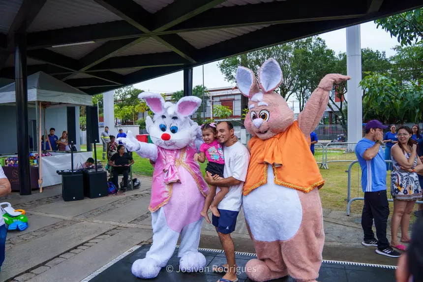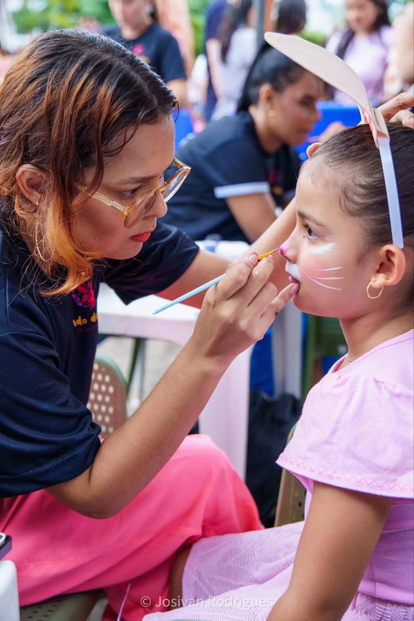 Além da brincadeira em busca de ovos de chocolate, a programação incluiu pintura facial, oficina de confecção de orelhinhas de coelho, presença de personagens temáticos e atividades recreativas, com distribuição de brindes.
